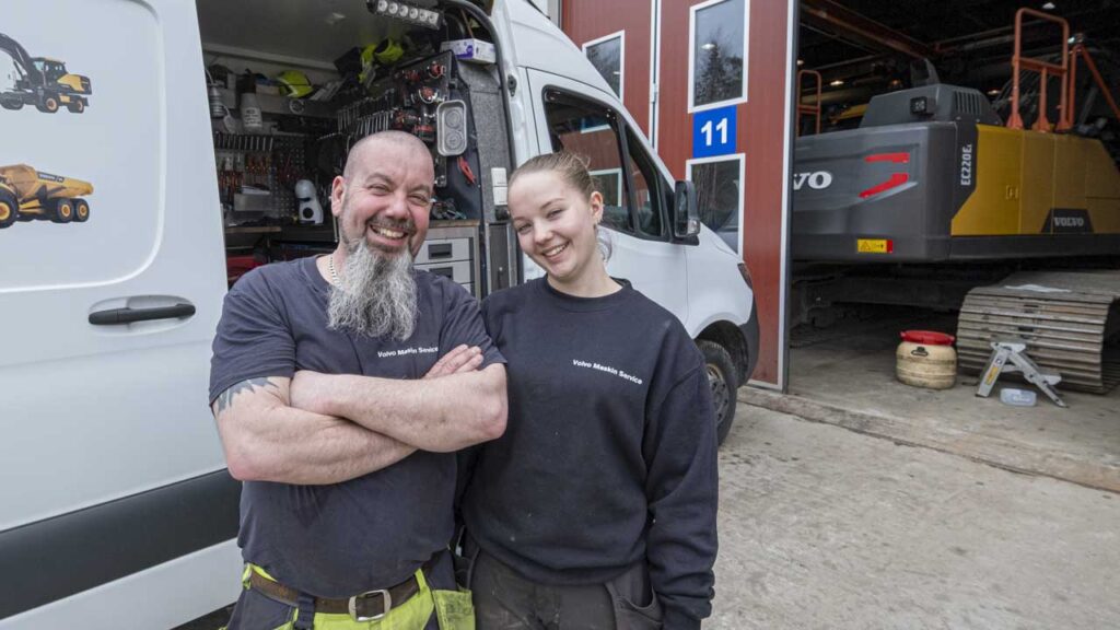 Møt Ian Stuart – alle kaller ham «Spike» – og Sarah Michelle. Far og datter, som skrur anleggmaskiner hos Volvo Maskin.